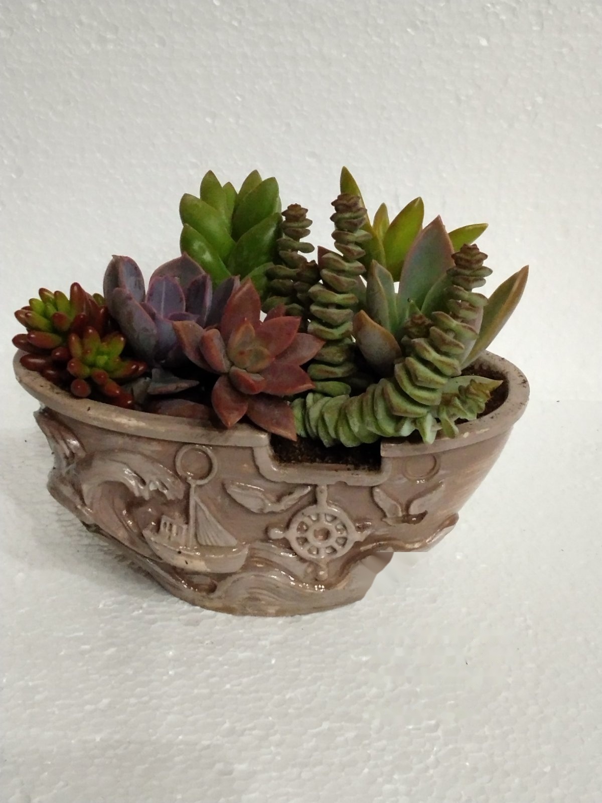 Visina ovi saksija: 6cm Širina saksije: 15cm Saksija od gipsa